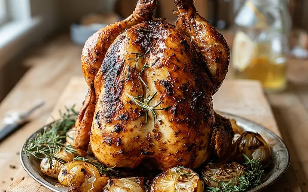 It was a sunny summer afternoon when I first learned about the magic of Beer Can Chicken. My friend Alex had invited me over for a backyard BBQ, and as soon as I stepped into his yard, the mouthwatering aroma of roasted chicken filled the air. “You’ve got to try this,” he said, gesturing towards a chicken perched atop a beer can, sizzling away on the grill. I was skeptical at first – beer and chicken? But one bite of that perfectly crispy, juicy meat had me hooked. From that day on, Beer Can Chicken has become a staple in my recipe repertoire, and it’s sure to become a favorite in your household too.