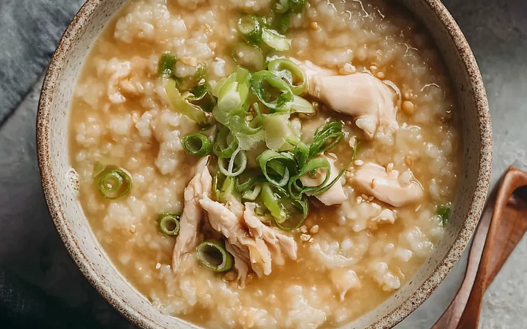 Indulge in the comforting, velvety goodness of this homemade Chicken Congee recipe. This traditional Chinese dish features tender shredded chicken in a rich, flavorful broth, simmered to perfection for a hearty, nourishing meal.