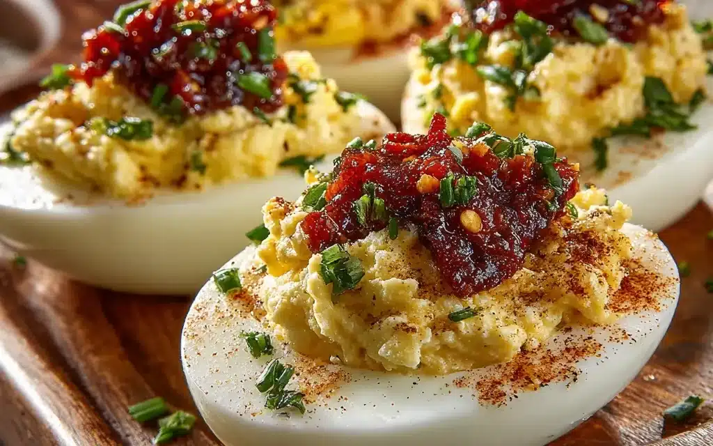 If you’re planning ahead, you can prepare the egg yolk filling and store it in a piping bag or airtight container up to 2 days in advance. When ready to serve, simply pipe or spoon the filling into the egg white halves and top with the relish.