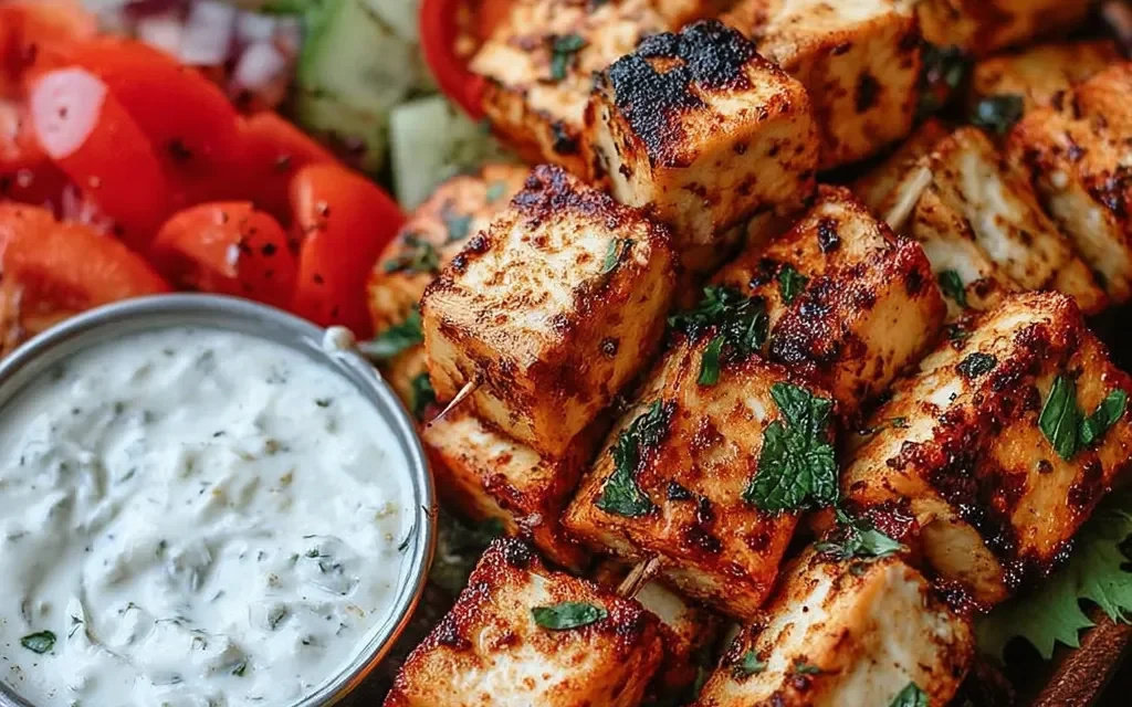 Enjoy the bold flavors of Greece in this simple and mouthwatering Greek-Style Tofu Souvlaki recipe, ready in just 30 minutes. Tender tofu is marinated in a zesty blend of herbs, spices, and lemon, then grilled to perfection and served with fresh veggies and a creamy tzatziki sauce.
