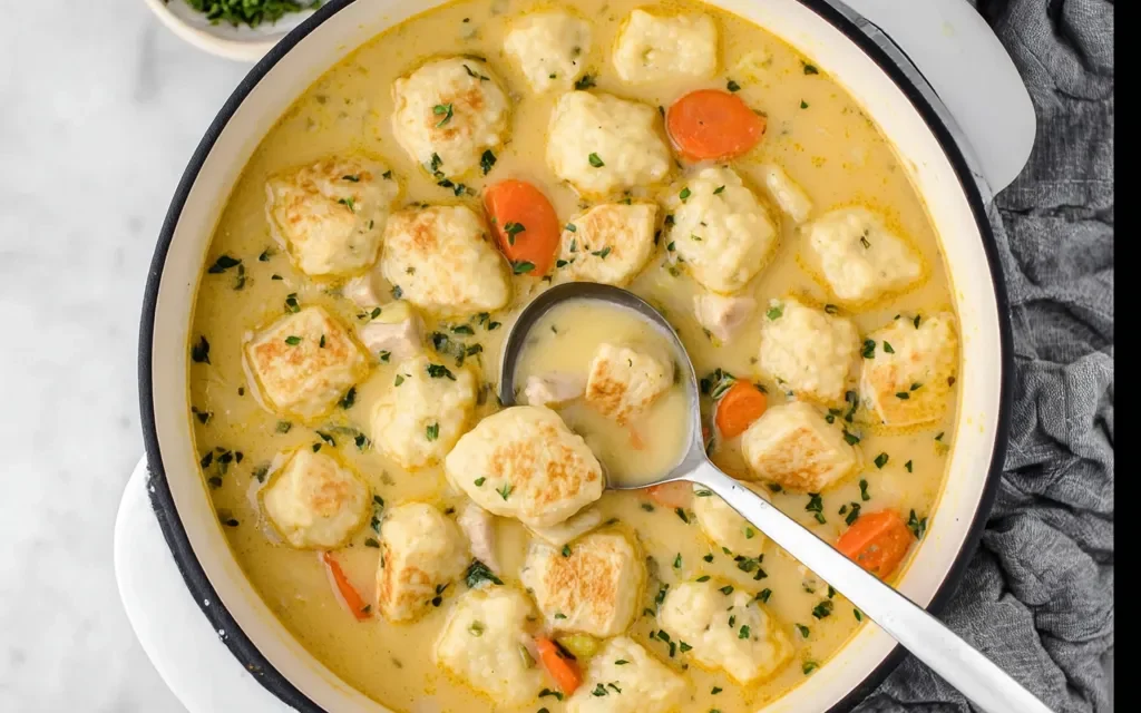 • 4 cups chicken broth: The flavorful base that carries the dumplings and potatoes.