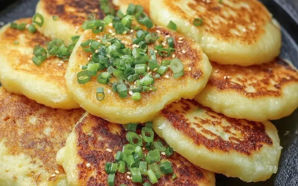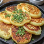 6- Serve your homemade Korean potato pancakes hot, garnished with green onions or your favorite dipping sauce. Enjoy!