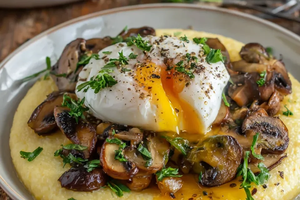 The Secret Behind Perfect Poached Eggs over Creamy Polenta with Mushrooms & Truffle Oil