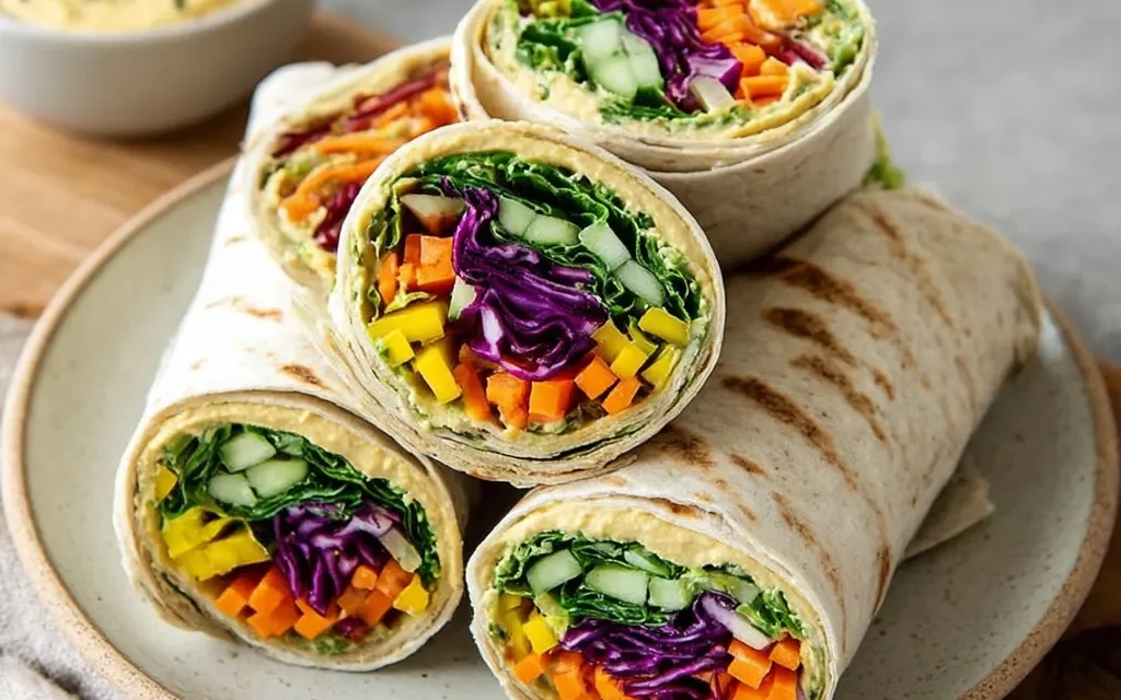 Creative Rainbow Veggie Wraps with Hummus Variations