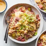 Enjoy the classic flavors of a Reuben sandwich in a convenient and comforting bowl format. These Reuben Bowls are loaded with tender corned beef, tangy sauerkraut, melted Swiss cheese, and creamy Thousand Island dressing for a quick and delicious meal.