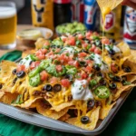 These Sheet Pan Touchdown Nachos are the ultimate crowd-pleasing snack, serving 4-6 hungry guests. For the perfect game day spread, pair them with an ice-cold beer or a refreshing margarita. They also make a fantastic appetizer alongside other game day favorites like wings, sliders, or deviled eggs.