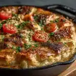 Sitting around the dinner table with my family, the aroma of bubbling Skillet Tomato Cheddar Chicken Pot Pie always filled the air. It was one of those comforting dishes that instantly transported me back to my childhood, when my mom would pull a golden, crusty skillet out of the oven, and we’d eagerly gather around to dig in. The rich, creamy filling, the tender chicken, the tangy tomatoes, and the melty cheddar cheese – it was a flavor explosion in every bite.