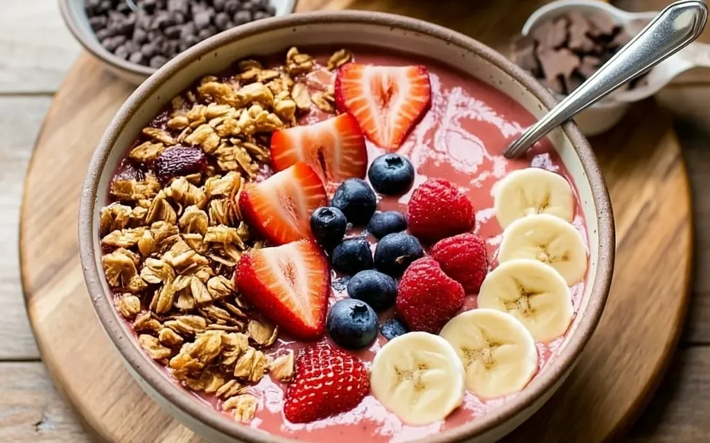 6- Serve the Smoothie Bowl Bar Ideas for Kids immediately, encouraging the kids to dig in and savor every delicious bite.
