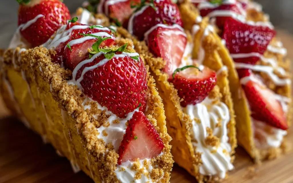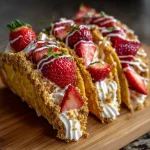 When she handed me that first Strawberry Crunch Cheesecake Taco, I didn’t know what to expect. But as soon as I took that first bite, I was in absolute heaven. The contrast between the crunchy shell, the rich, velvety cheesecake, and the sweet, fresh strawberries was simply out of this world. It was like fireworks going off in my mouth! Needless to say, I went back for seconds (and maybe even thirds) that day.