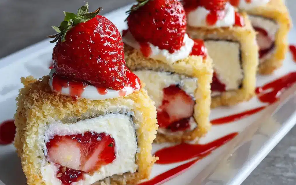 Creative Strawberry Shortcake Cheesecake Sushi Rolls Variations